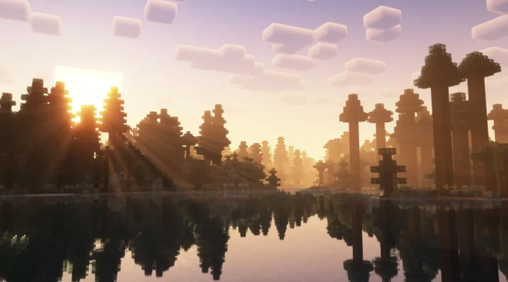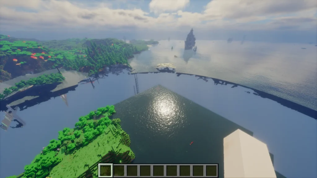 Clouds are stylized rather than ultra-realistic, keeping the overall look closer to Minecraft’s original art direction. Subtle bloom, fog, and color grading help tie everything together without making the game feel artificial or overprocessed.