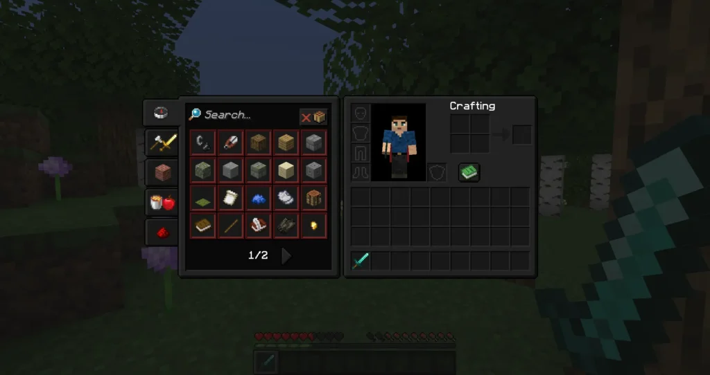 This careful balance ensures that gameplay clarity is never compromised. Item icons stand out more clearly against darker inventory slots, making it easier to identify tools, armor, and resources at a glance. Menu navigation also feels cleaner, as buttons and panels have stronger contrast without looking flashy or overdesigned.