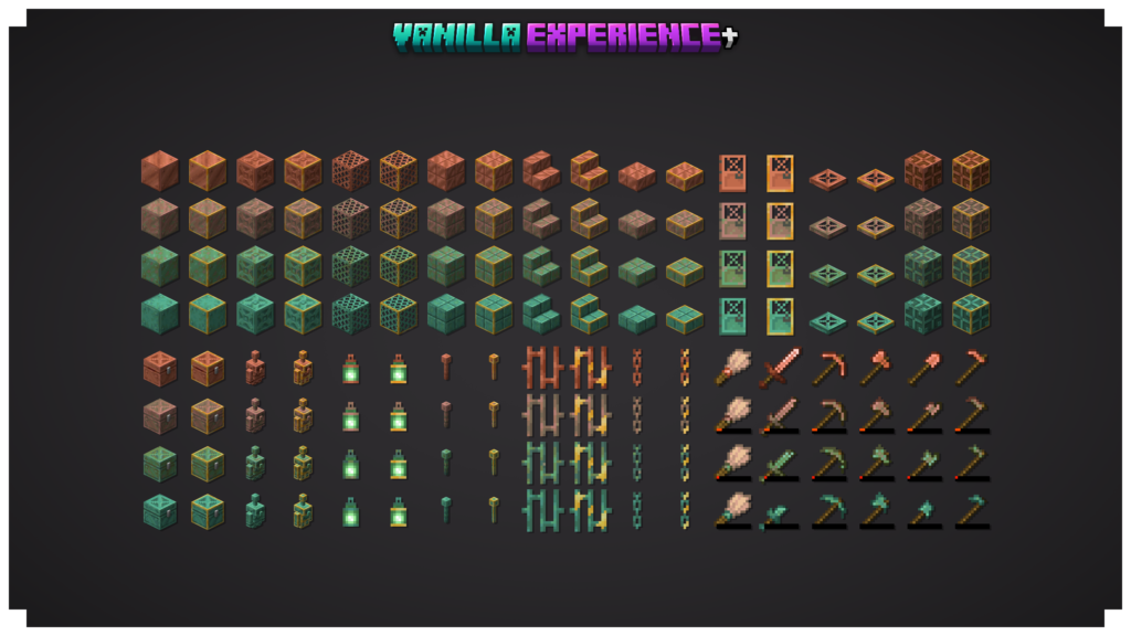 The visual direction of Vanilla Experience+ can best be described as clean, refined vanilla. It does not aim for realism, cartoon exaggeration, or PvP minimalism. Instead, it carefully adjusts the existing palette and detail level.