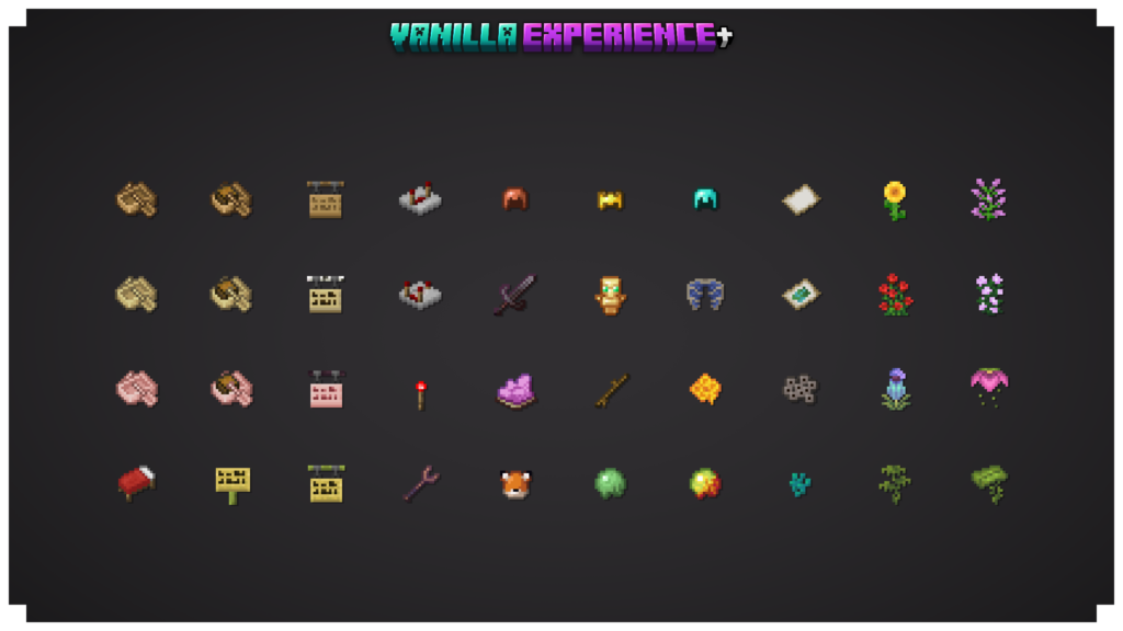 Vanilla Experience+ refines Minecraft’s textures while staying loyal to the original art direction. The goal is simple: keep the vanilla charm intact, but improve clarity, detail, and overall consistency. If you enjoy Minecraft’s classic style but want it to feel slightly more polished, this pack is built exactly for that purpose.